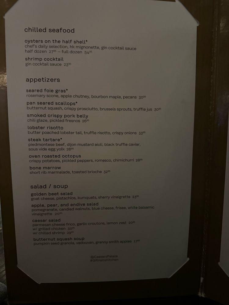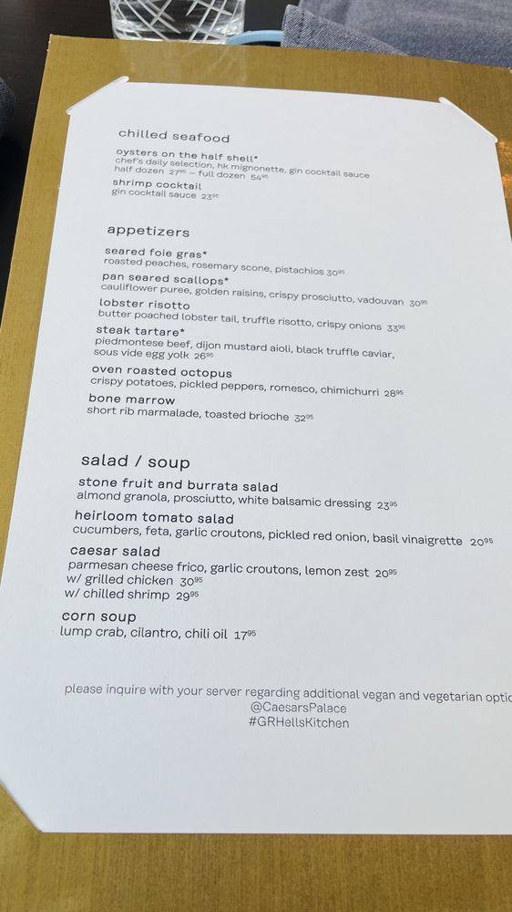 Gordon Ramsay Hell's Kitchen, located on Las Vegas Blvd, offers a trendy and upscale dining experience with a casual yet classy atmosphere. This restaurant provides a range of dining options, including brunch, lunch, dinner, and dessert, making it suitable for various occasions. With its vegan and limited vegetarian options, Gordon Ramsay Hell's Kitchen caters to a variety of dietary preferences. Additionally, the restaurant is wheelchair accessible and ADA-compliant, ensuring inclusivity for all guests. The menu features a diverse selection of dishes, from classic favorites to innovative creations, all served with excellent waiter service. Whether you're looking for a spot for a group gathering or a memorable meal with family, Gordon Ramsay Hell's Kitchen delivers a superior dining experience.
